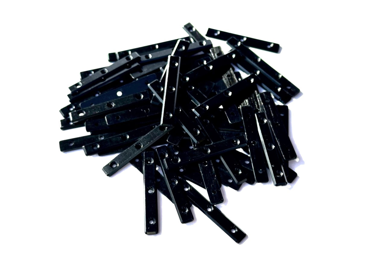 Deck Shields by Dungeon Crawl. Solid metal fingerboard board rails. See chart in images for comparison and specs. Hardware included (6 screws). Black Magic Edition: Black anodized and sand-blasted.